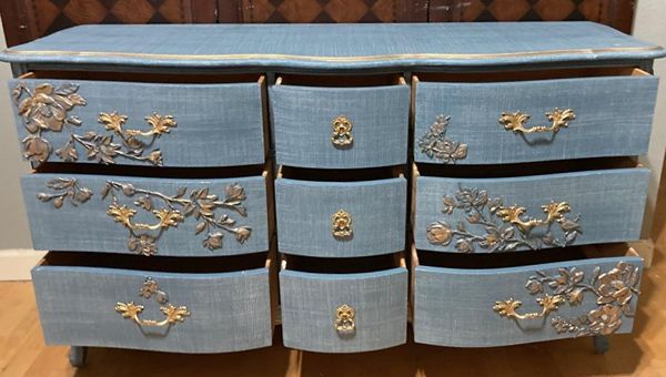 Custom Denim Textured Dresser w/Hand Poured Magnolia Blooms Photos