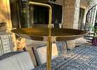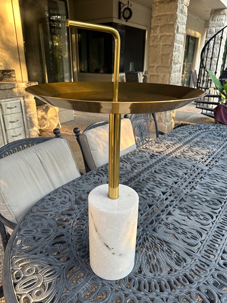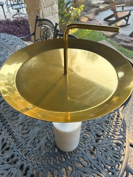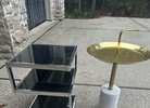 Two accent tables sold separately. Black glass and chrome table $40. Gold metal with solid white granite base. Very heavy. $75. Both are in excellent condition. Located in the Woodlands