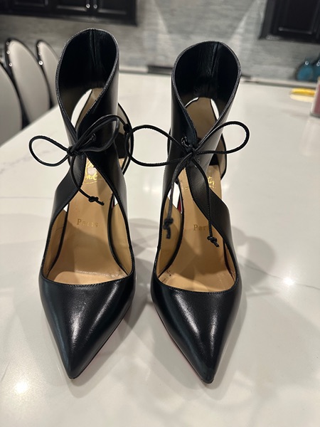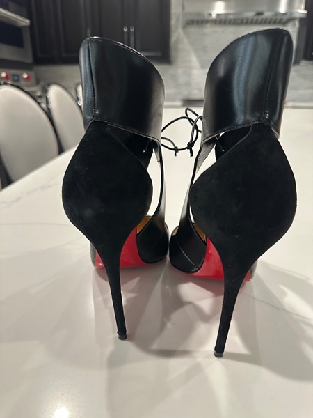 Christian Louboutin heels in excellent condition. Very clean and slightly worn. Black leather and black suede combination. $750. (Paid $1400) Size 37.5 (women's 7-7.5). Located in the Woodlands