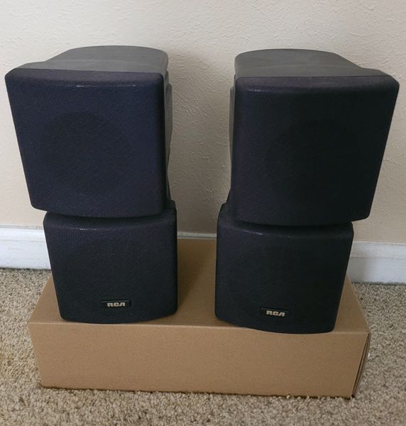 Speakers (2): RCA bookshelf, Model XTS-60AV, Key specs: 2-way design, 6.5 inch woofer + 1 inch tweeter, Power handling: 100 W, Impedance: 8 ohms, Frequency response: 60 Hz - 20 kHz, Era: mid 2000s RCA AV series. Excellent condition.