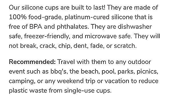 Silicone! Flexible, unbreakable glass set of 2. New! Travel with them to any outdoor event such as bbq's, the beach, pool, parks, picnics, camping, or any weekend trip or vacation to reduce plastic waste from single-use cups.