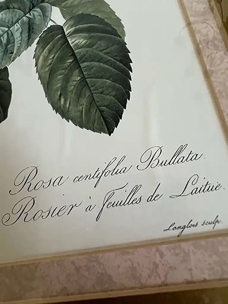 Elegant framed botanical print of a rose with gold accents. Approx. 22 1/2” x 18.25”. Slight blemish in one area, hard to notice (see last pic)…$15 firm