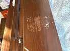 There is some minor damage to the wood finish (see photos) and the keyboard cover is missing the knobs.