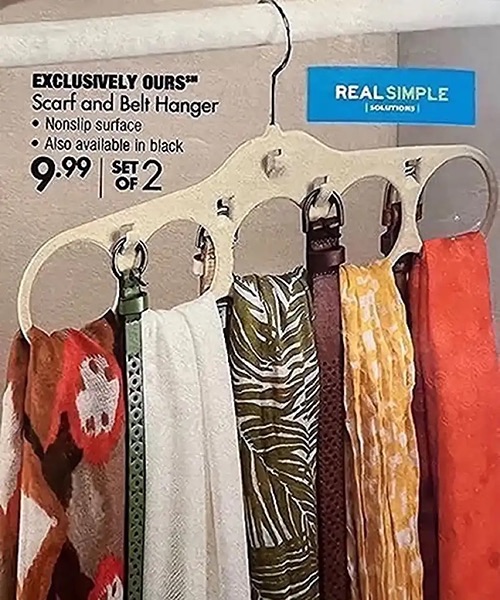 Scarf & belt hanger, scarf and clutch