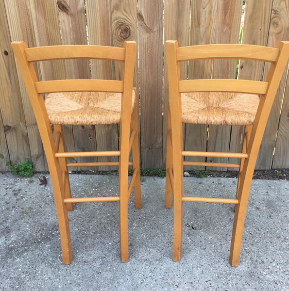 Solid Wood Woven Rush Straw Seat Bar Stools Photos