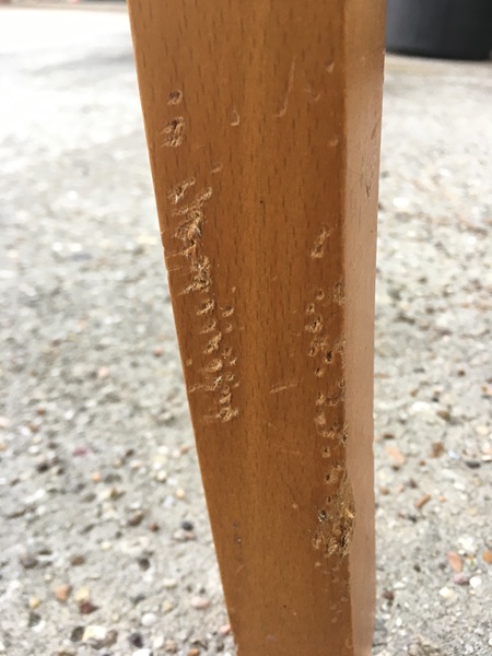 ***PLEASE see pictures as one of the stools was damaged with bite marks at the bottom leg.