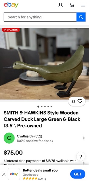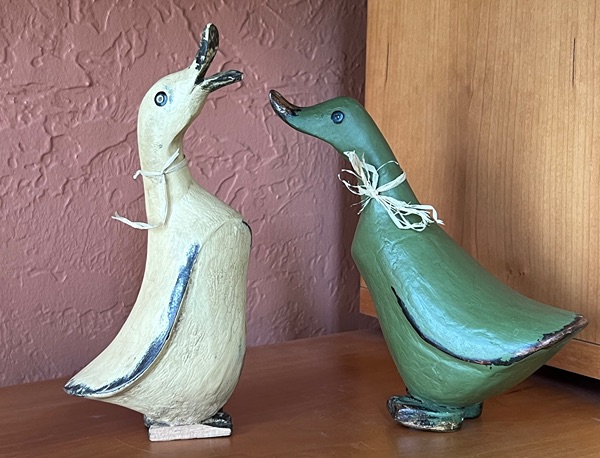 Set of two hand-painted wooden ducks with ribbon accents. Vintage Smith & Hawkins ducks…$40 firm