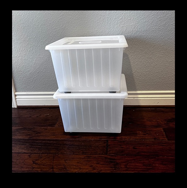 Three 50 Qt Sterilite Bins + 2 Ikea Rolling Bins - 6 bins totali Photos