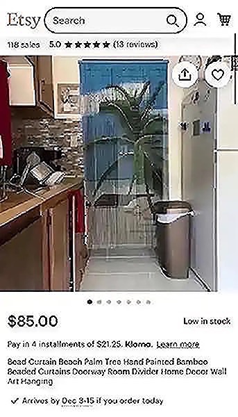Fits normal size doorways (we used it on a closet so there was a bit of overhang on each side and that looked good too. Only missing a couple strands and has a few kinks from normal wear so discounted appropriately but still looks great!Palm tree - surf - beach - island theme -last pics for price comparisons