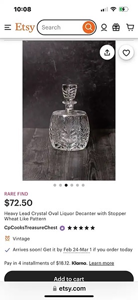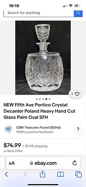 Crystal decanter, like new, 8 1/2” x 6”, no chips or cracks!...$40 firm