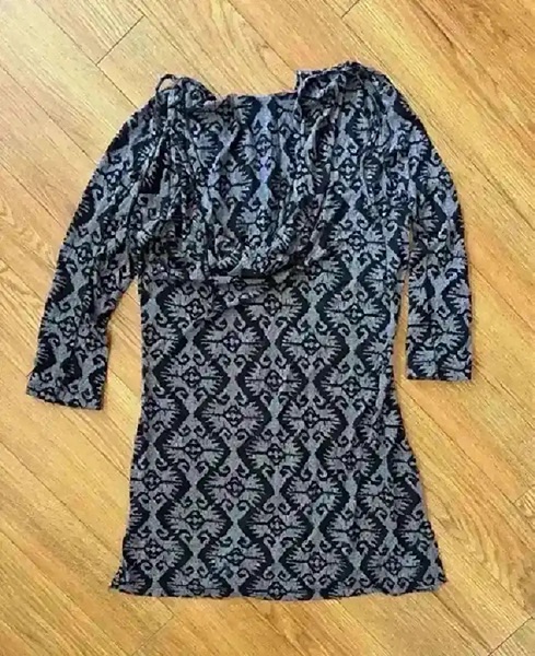 Long-sleeve black and gray patterned swim coverup or yoga dress. Only wore a couple times. Excellent like-new condition! Size M. Looks great with black leggings or black bathing suit!…$18 firm