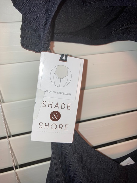 Brand is Shade & Shore, size small, medium, or large. Adjustable straps, removable cups, medium coverage, ribbed. New with tags from smoke free home. $10 each
