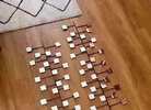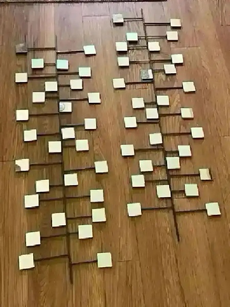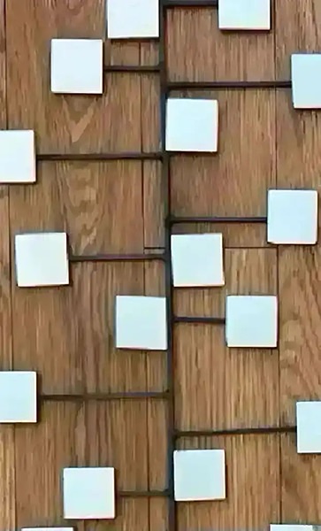 Measures 35 1/2” x 11” Ready to hang horizontally or vertically, side by side, off-set or stacked to make one long piece. Mid-century modern cool!