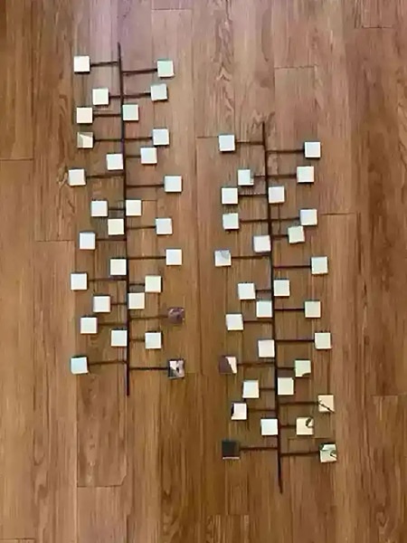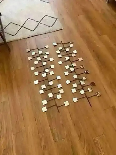 Modern mirrored metal wall art from West Elm. Stored under my bed- never got around to using.