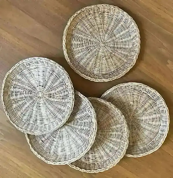Five wicker paper plate holders, about 10” in diameter…$8 total, firm