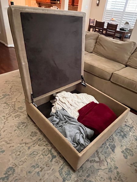 Macy’s Radley sectional sofa with ottoman. Color is called caramel. Large storage area in ottoman. All cushions are reversible except the chaise. All cushion covers can be removed and washed. Non smoking home. 144x112. Cash only. Must be picked up.