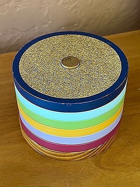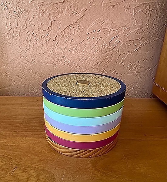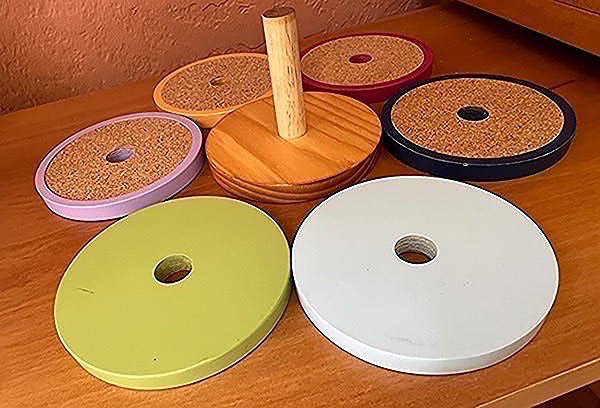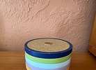 Set of colorful coasters with a wooden base. Only the top coaster was used…$10 firm