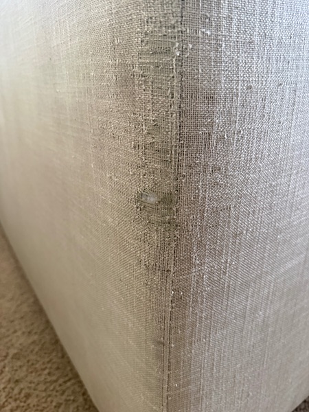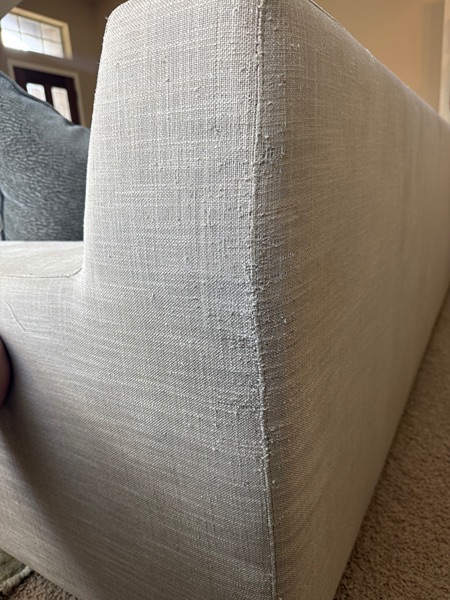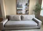 This is the “Modena” RH Bench Seating sofa. It’s in good condition. In the color “dove gray”Standard cushions, all covers are washable. There’s some minor cat scratches on the back corner and a few top of the couch. If it’s behind a wall, it won’t be noticeable. We did steam cleaned it.