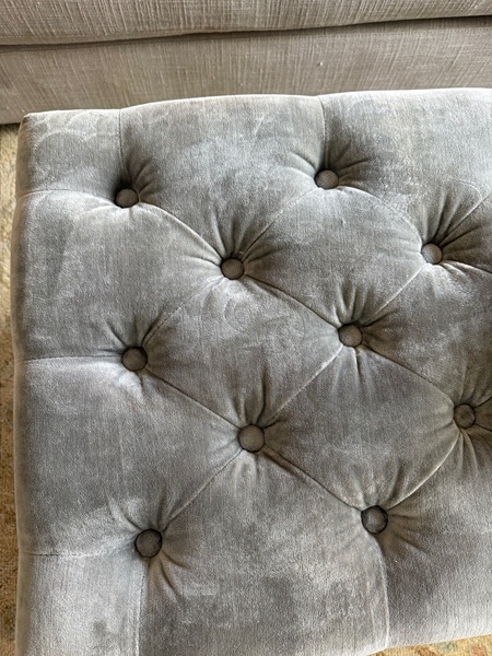 Also, throwing in the bench/ottoman with it. It’s a beautiful gray color with chestnut finish caster wheels. We also got it cleaned. There’s a small stubborn stain on it.