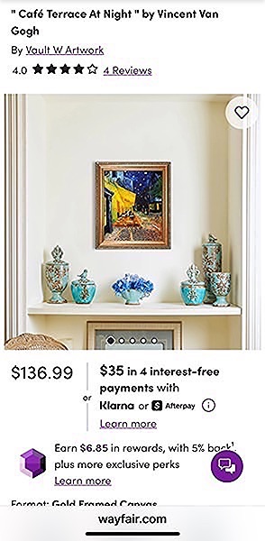 Framed print of Van Gogh's Cafe Terrace at Night…$50 firm