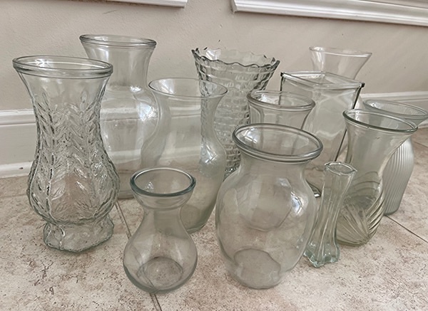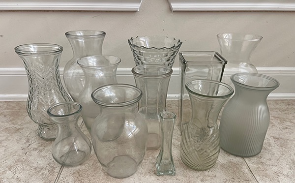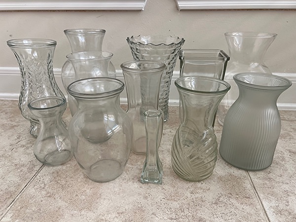 Assorted glass vases in various shapes and sizes. Twelve vases…$20 total, firm