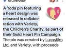 In addition to Yoda and Darth Vader, other Star Wars characters like R2-D2 and C-3PO have also been featured in Variety's Gold Heart Pin Campaign…$8 firm