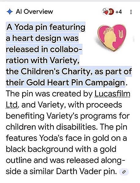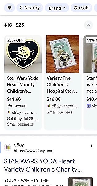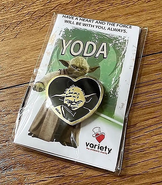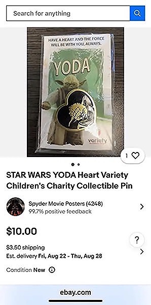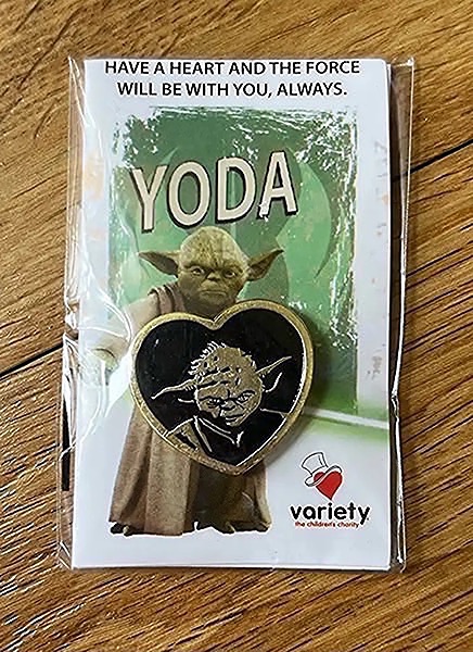 The Yoda pin was available for purchase through movie theaters and online, typically with a donation to Variety.