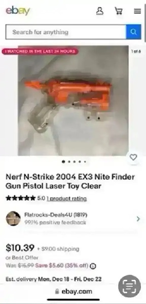 -Nerf gun 2004 Nerf Elite N-Stryke EX3 Nite Finder with red laser (tested, working)…$15 total, firm