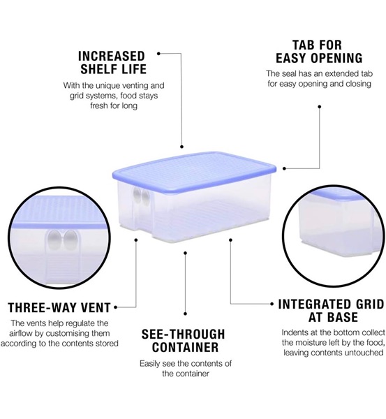 - Increased Shelf Life: Ridges at the bottom prevent the moisture collected at the bottom of the box from touching the stored fruits or vegetables, thus increasing their shelf life.