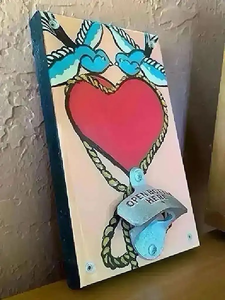 This cleverly designed piece by Sweet Art Attack is as fun as it is functional. This unique piece is finished with a clear coated design and is mounted on MDF (medium density fiberboard). All four corners have small holes for easy and secure mounting and mounting screws are included.