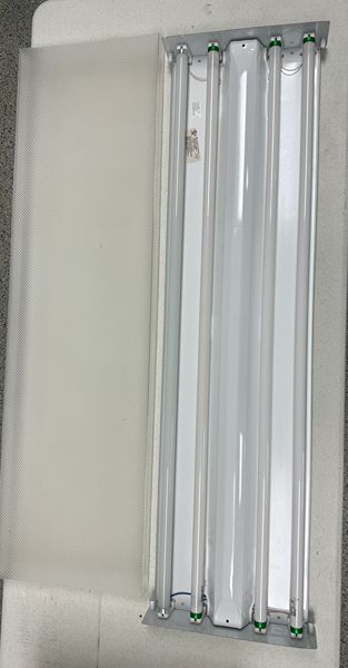 6-48" Fluorescent Light Fixtures with 4 Bulbs each. Used fixtures, One has a bad ballast, other 5 work fine.
