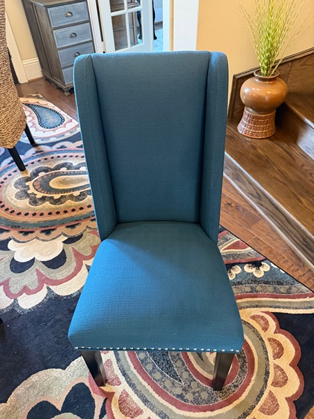 4 upholstered chairs are 39.5" tall, seat 19.5 wide by 17" depth , seat height 18"