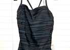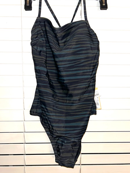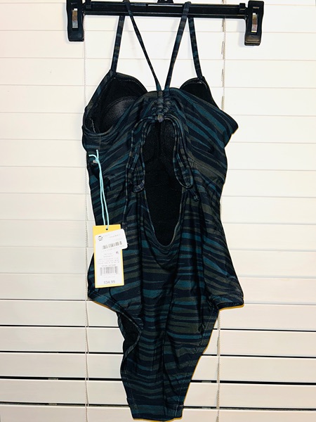 Brand is Kona Sol, size small (4-6). Black zebra stripe pattern, straight neck, spaghetti straps, cinch back with cut-out accent. New with tags from smoke free home. $10