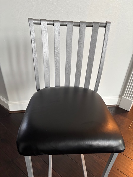 Set of 4 sturdy counter-height bar stools made of heavy-duty steel. These have recently been repainted and reupholstered, so they look like new. Very solid, high-quality stools that will last for years.