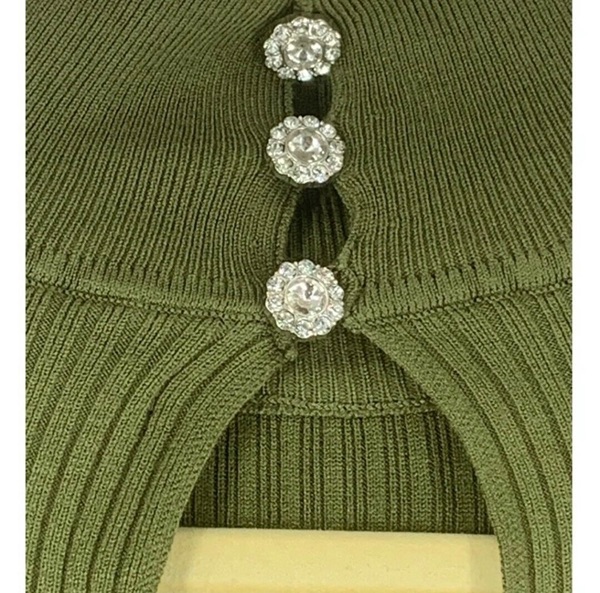 Pullover, long sleeve, mid rise neck sweater dress in size XS, S, and L. Color is Winter Moss. Split hem on one side. Brand is Who What Wear. New with tags from smoke free home. $14