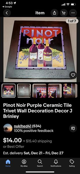 Selling a **beautiful set of 4 framed artworks**, each celebrating a different wine: *Merlot, Cabernet, Pinot Noir, and Shiraz*. Measures 8” By 8”.These pieces feature rich colors, wine bottles, glasses, and grape clusters — perfect for kitchens, dining rooms, wine bars, or cozy corners. Message me to schedule pickup. Signed by artist *J. Brinley* - Dark wood frames, ready to hang - Artistic and vintage-inspired style - Excellent condition, no scratches or damage . Ideal for wine lovers or as a unique gift. Sold as a complete set. Local pickup in The Woodlands, TX compare price on e-bay.