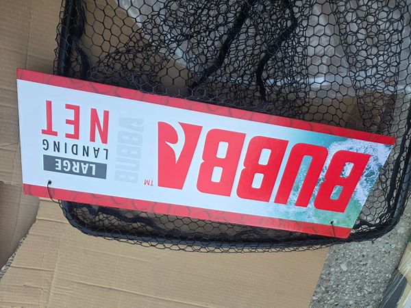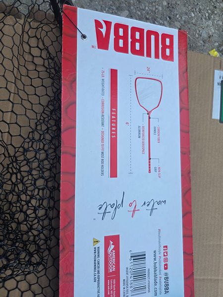 Brand new never used BUBBA Landing Net with Corrosion Resistant Construction, Non-Slip Grip Handle and Carbon Fiber Shafts for Fishing, Angling, Boating and Outdoors. 24 inches wide x 6 ft long. Very small scuffs on the handle from moving it around. Retails for $237 tax on Amazon. If interested please text me .