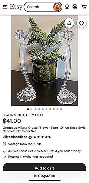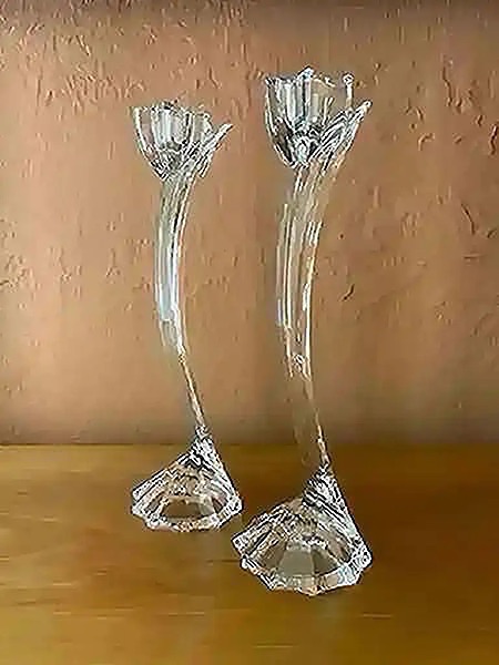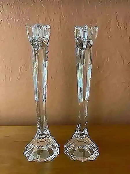 Crystal candlesticks by Mikasa “Flower Song” measures 10” tall, no chips or cracks…$40 firm