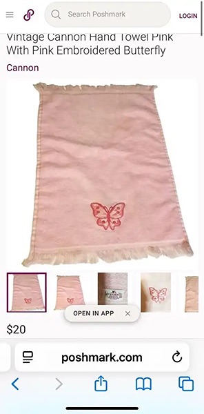Set of two pink hand towels featuring embroidered butterfly design by Cannon. 100% cotton. Great shape, no stains…$10 firm