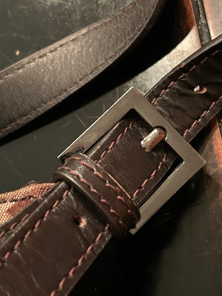 insde does have some makeup on the bottom but no rips or tears. All zippers and hardware beautiful. Leather straps in great condition. Vintage piece with signs of wear.