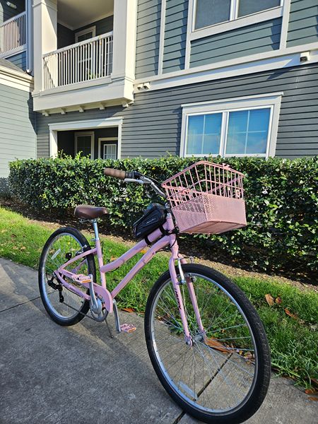 Womens Huffy 7 speed cruiser bicycle with Shimano twist grip shifting. Upgraded platform pedals, new chain, cables and compatabile basket which you can take on and off without tools. Also comes with cell phone holder. Steel frame, sturdy and quality.