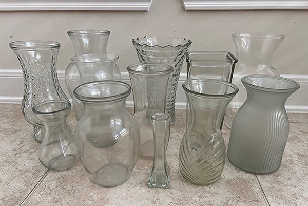 Assorted glass vases in various shapes and sizes. Twelve vases total!…$20 total, firm