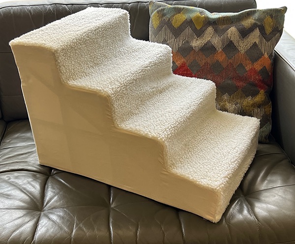 Creamy white, soft fleece pet stairs for easy access to furniture. Cover is removable and washable. Approx. 22” x 14” x 15”. Barely used and recently washed. Last pics show similar items...$25 firm