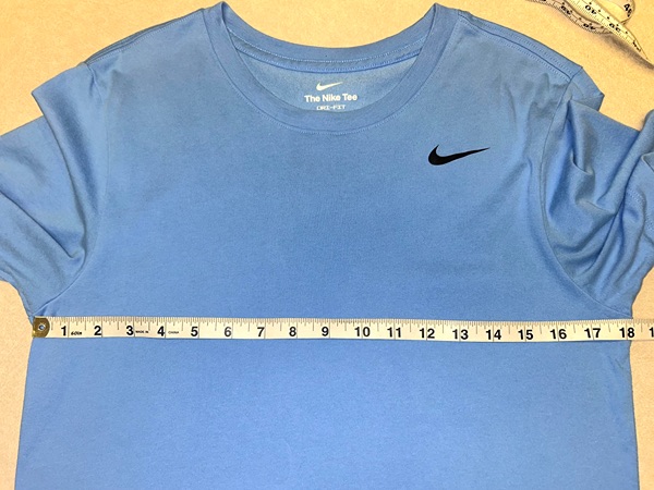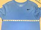 Men's small activewear Dri-fit tee in light blue with a dark Nike logo swoosh on left chest (may be black or dark blue-I can't distinguish between those colors). No major flaws, just light wear/pilling. Overall good condition from smoke free home. $5