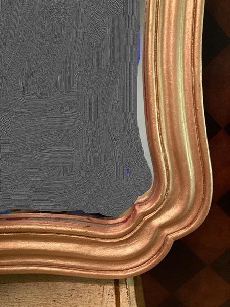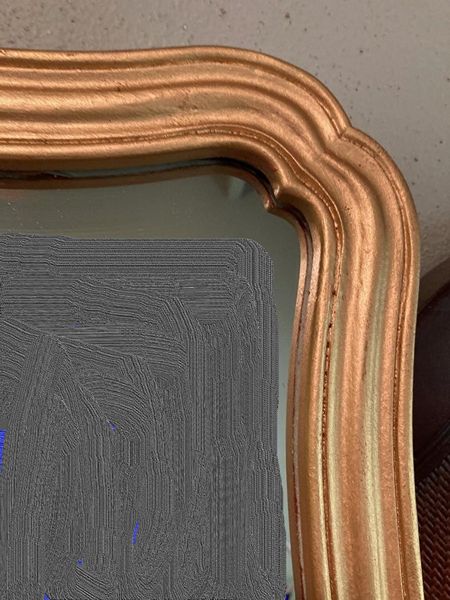 Unique French country No. 9 gilded gold Vertical decorative mirror. It's perfect for over an entry console, over mantle or above your dresser or just to bring light into your space. Comes ready to hang with 2 "D" rings. Images reflected in the mirror were photo shopped out. The mirror glass is in perfect condition