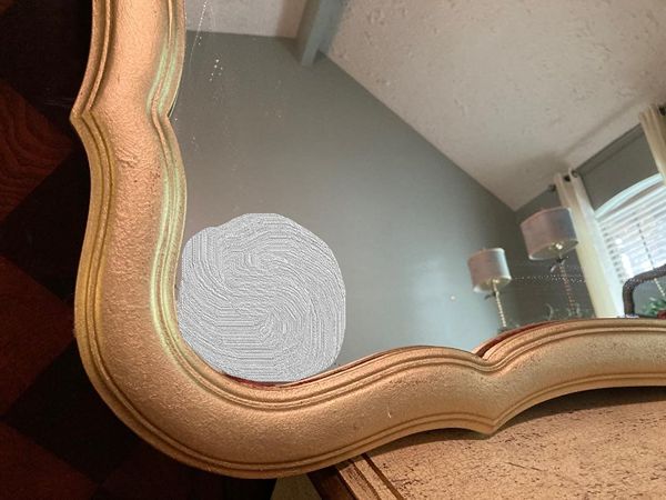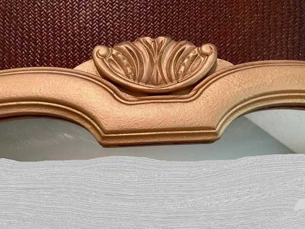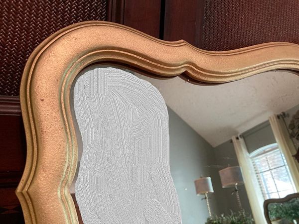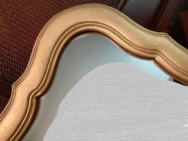 Lovely vintage French country No. 6 gilded gold crown decorative mirror. It's perfect for over an entry console, over mantle or above your dresser or just to bring light into your space. Comes ready to hang with 2 "D" rings. Images reflected in the mirror were photo shopped out. The mirror glass is in perfect condition.