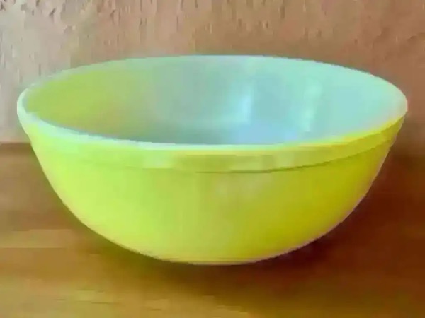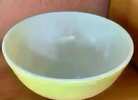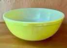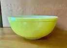 Vintage lemon yellow Pyrex 10.5 inch large mixing bowl in good condition. This bowl has no chips or cracks. Because of it's age and usage it does have some small scratches and signs of wear on the outside of the bowl.