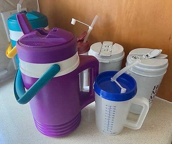 Collection of large drink jugs with handles and straws…$15 firm