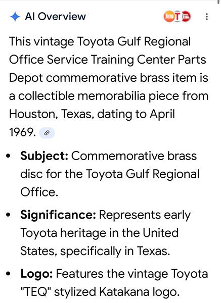 Toyota commemorative magnifying glass Houston 1969 Photos