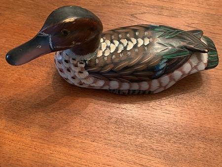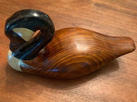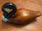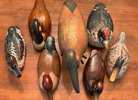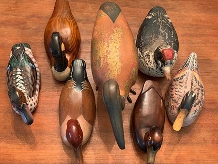 For sale are six wooden ducks and one wood/metal ibis. Two of the ducks were previously used as decoys. The other items are decorative. Beautiful detail and four of the seven include glass eyes. The ibis is 13" tall and 18" long. All other items are approximately 12" long. $20 each or all seven for $100. Thank you.